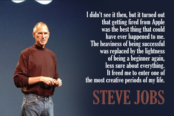 I didn’t see it then, but it turned out that getting fired from Apple was the best thing that could have ever happened to me. The heaviness of being successful was replaced by the lightness of being a beginner again, less sure about everything. It freed me to enter one of the most creative periods of my life.