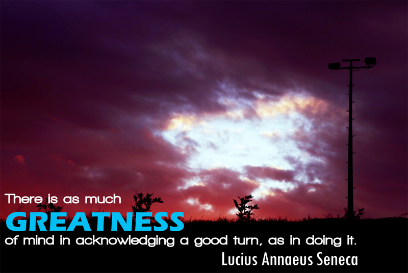 There is as much Greatness of mind in acknowledging a good turn, as in doing it.