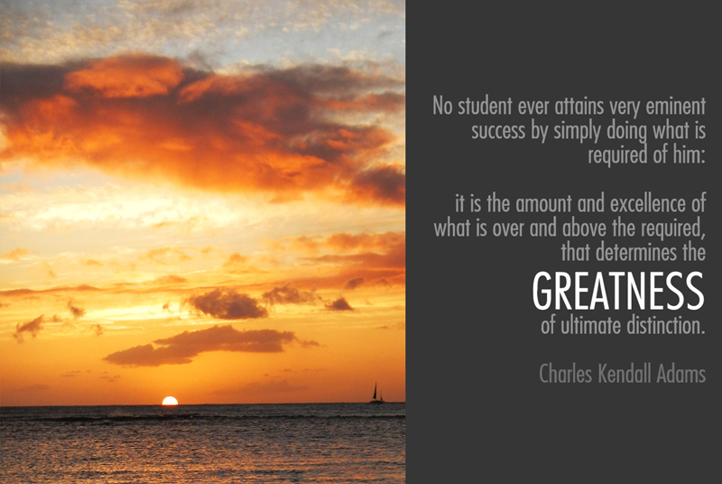 No student ever attains very eminent success by simply doing what is required of him: it is the amount and excellence of what is over and above the required, that determines the greatness of ultimate distinction.