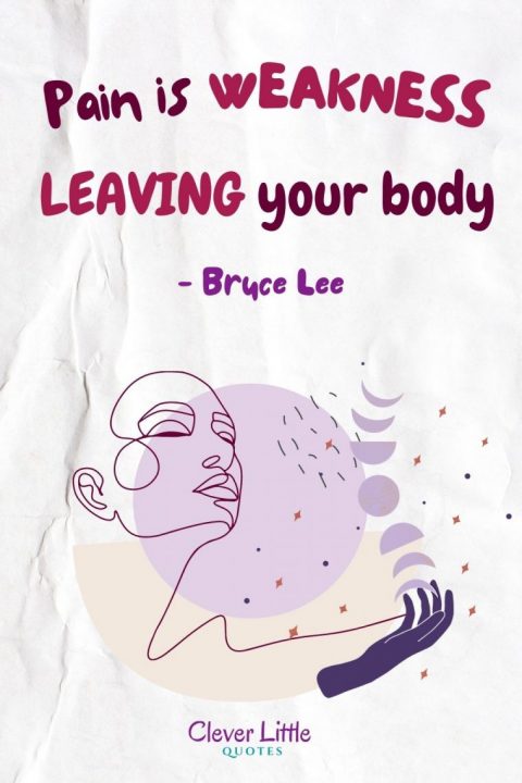 April 28, 2021September 23, 2020 by Clever Quotes “Pain is weakness leaving your body.” – Bruce Lee Pain is weakness leaving your body - Bruce Lee Click to Share Pin this Image Pin Help us to share this great article. Your friends will appreciate it! 5shares Facebook0 Twitter1 Pinterest2 LinkedIn1 Flipboard Tumblr1 Mix