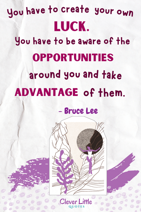 You have to create your own luck. You have to be aware of the opportunities around you and take advantage of them - Bruce Lee
